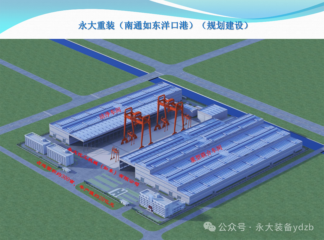 永大(如東)重型化工裝備項目總投資10億元,占地272畝,總建筑面積約12萬平方米,預計2025年12月竣工投產(chǎn)。建成后以專、大、重型產(chǎn)品為主,以海上平臺撬裝、工藝包撬裝為特色服務海內外業(yè)主,結合金牛碼頭的海運優(yōu)勢實現(xiàn)年產(chǎn)6萬噸以上重型化工裝備,建成后年產(chǎn)6萬噸重型裝備,全面達產(chǎn)后可實現(xiàn)應稅銷售11億元,稅收9000萬元左右。